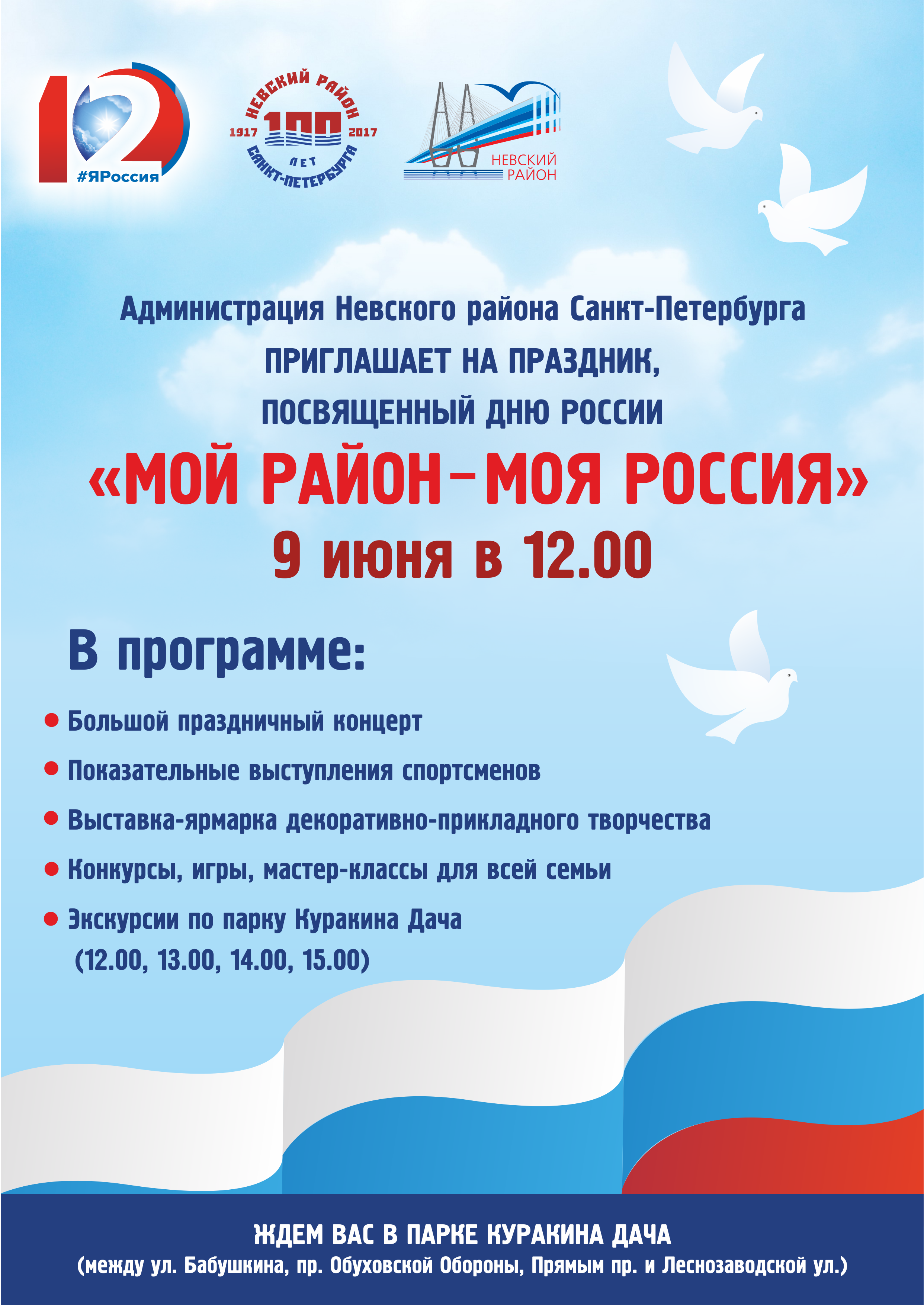 Администрация Невского района приглашает на праздник "Мой район-моя Россия", посвященный Дню России!